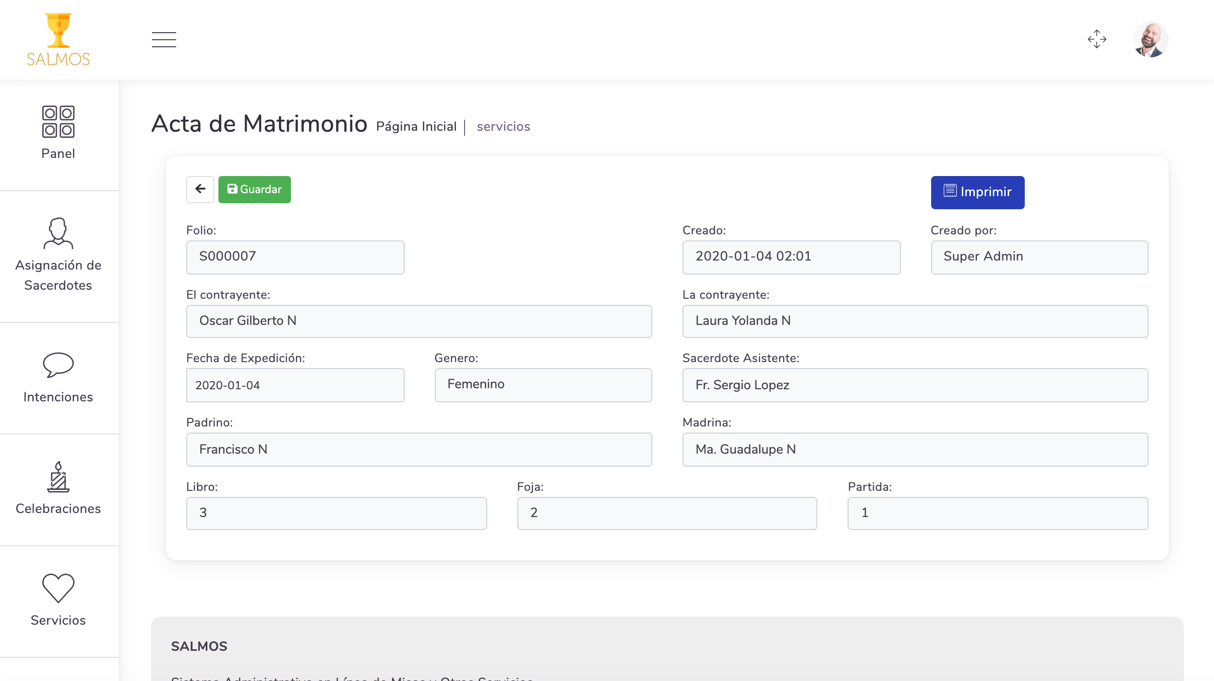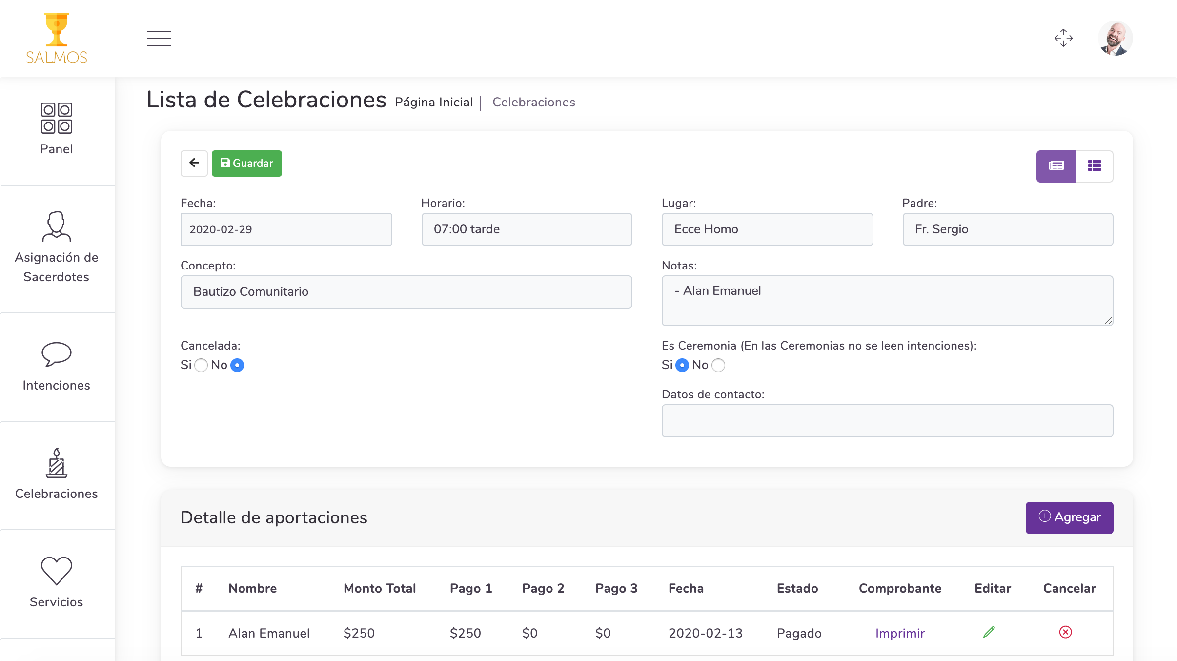 Con este sistema podrás evitar recaptura de información, molestias de los feligreses al registrar mal sus intenciones, confusiones en fechas y horarios de celebraciones importantes como Bautizos y Bodas. Con los reportes consolidados se evitan las confusiones entre celebrantes y permitirá mayor eficiencia en la cobertura de las misas en los distintos templos de la parroquia.